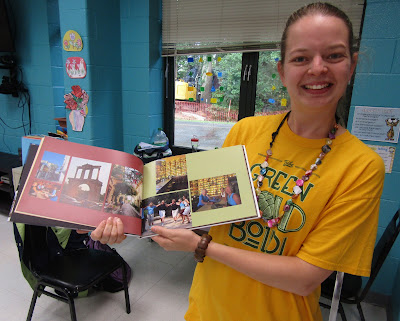 In the spirit of the Olympic Games taking place, we learned about Greece and Ancient Greece today. Liz's lucky mom, Lise, visited Greece with her mom and sisters back in 2011, so Liz brought souvenirs to enhance our lesson! She's modeling jewelry, including a bracelet made from olive wood, worry beads, and a lovely beach coverup!