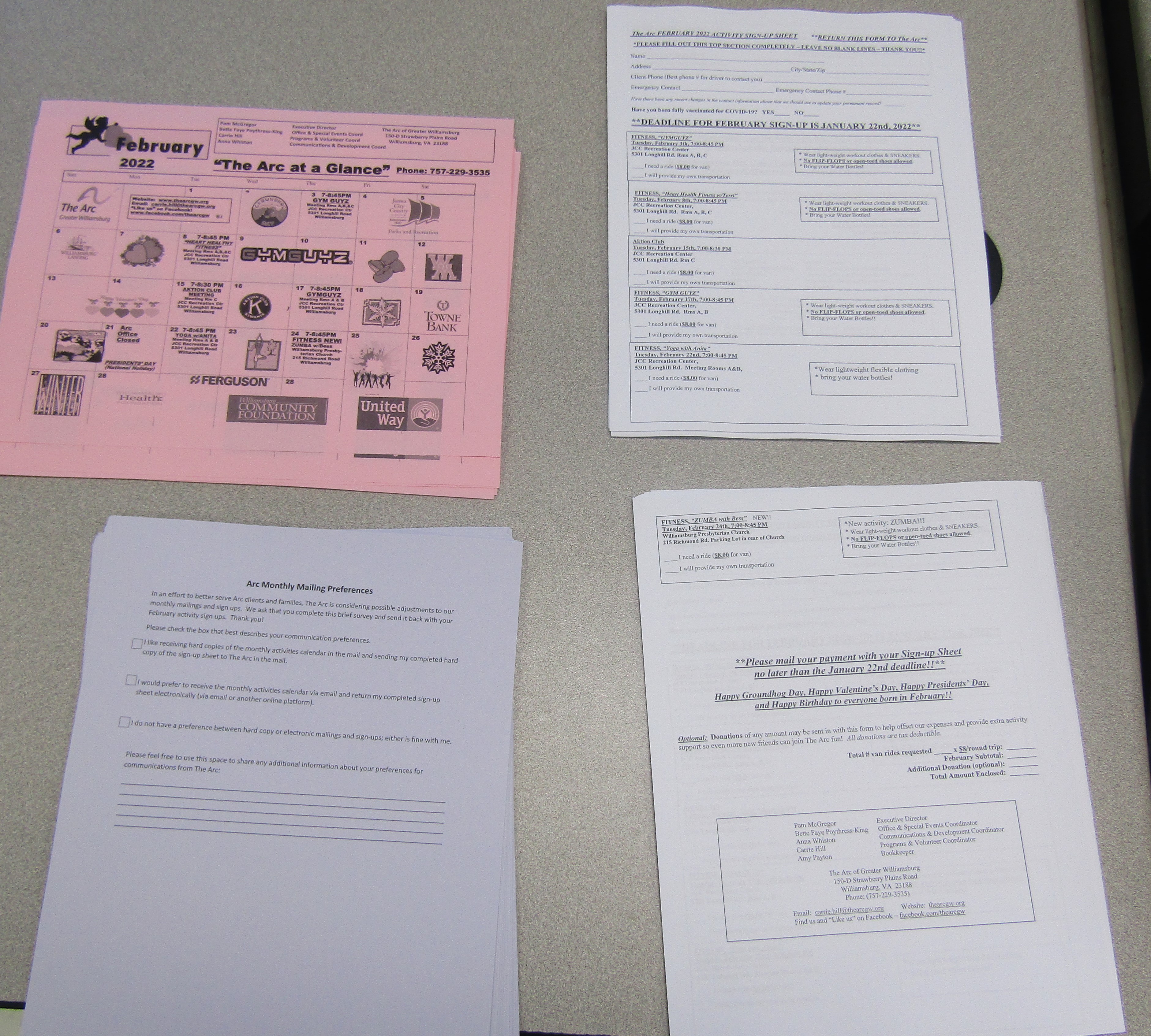 With Carol being out of town, we had to coordinate the assembly of the Arc's February mailing without her. Nan and this crew got it done!