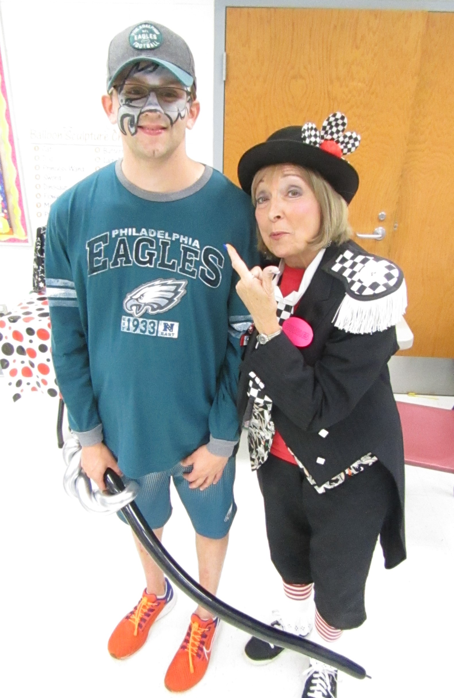 These four were already celebrating NFL Draft Day by repping their team colors. Once Bubbles added the face paint, we had a Braves baseball player in a Panthers shirt, a Commanders Unicorn, a legit Eagle from Philly, and a Seahawks Unicorn!