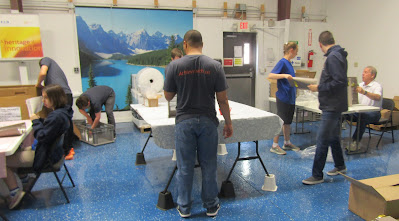 Lisa had a challenge trying to get pictures because of being "in charge" with Carol gone, but it's clear from what we got that our guys were on the ball and knew just what to do. Before lunch, several of them worked on assembling PowerSlide doors.