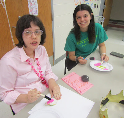 Karryna was able to join us for Kate's party. There was an oyster shell for her, too! Kate painted hers pink and red, but Karryna just went with pink! Later, we found out Karryna has landed a new job with Sheltering Arms, a rehabilitation center in Richmond. She will be leaving JCC Parks & Rec, and we will miss her a lot! We are very proud of her, though, and happy she has an opportunity to use her amazing talents with the participants at a day program at Sheltering Arms. 👏👏