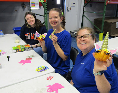 Next thing we knew, things went from work mode to fun mode! Our Eaton friends set up a table filled with craft materials and a box of little pumpkins. It was time to put work aside and get our crafting on!!