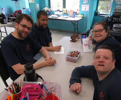 Today we welcomed 3 guests who wanted to see our program in action, and they became extra sets of hands at Eaton. It was great! Meghan has been volunteering with Arc evening programs, and Lauren and Patricia are graduate students studying school psychology at W&M. We really appreciated their help while they "observed" today!