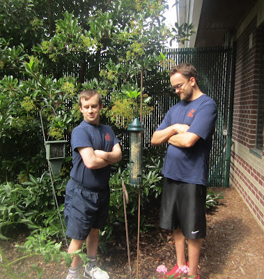 Today, Bryan and Devin decided to stand guard...but that's not a sustainable solution! We'll keep thinking...